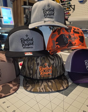 Custom embroidery on hats, shirts, towels, and more.